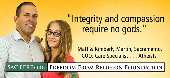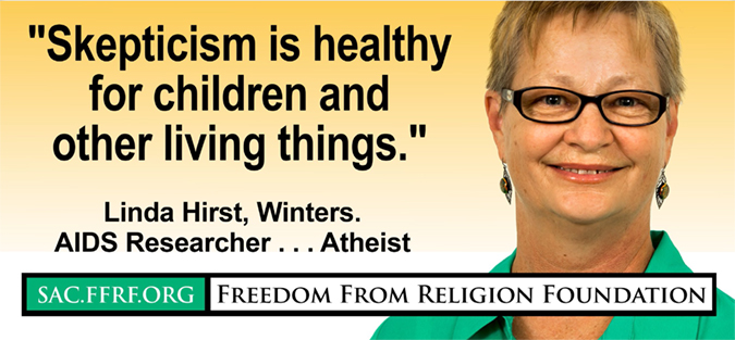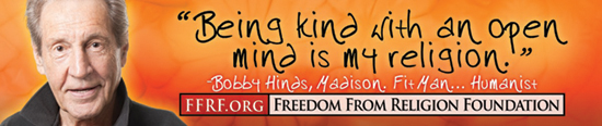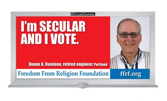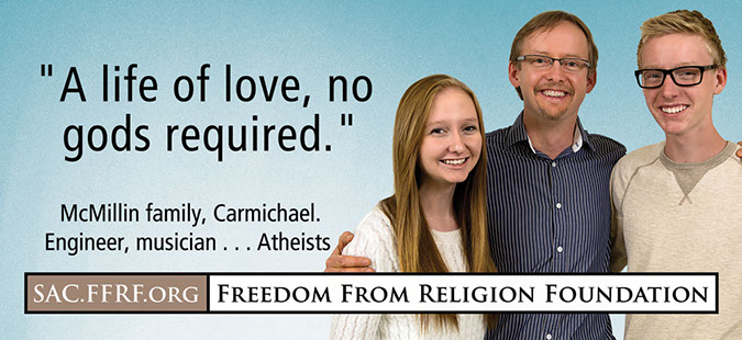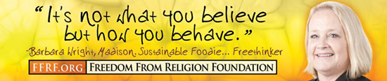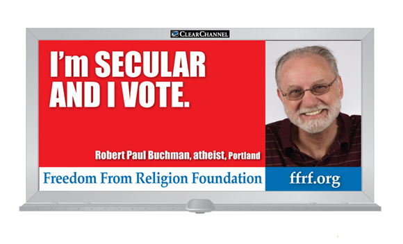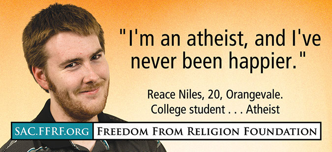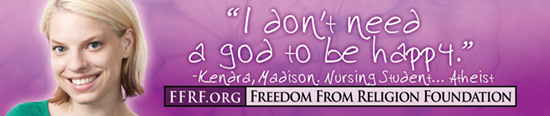 FFRF’s myth-dispelling and uniquely positive “Out of the Closet” billboard/bus sign campaign debuted in a Madison, Wis. in October 2010. (Scroll down to find archive of Madison billboards.)