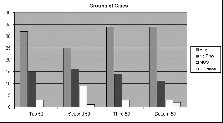Almost half of the top 24 cities didn’t concern themselves with prayer. What should that indicate to responsible mayors — that there’s no plus to prayer? We think so.