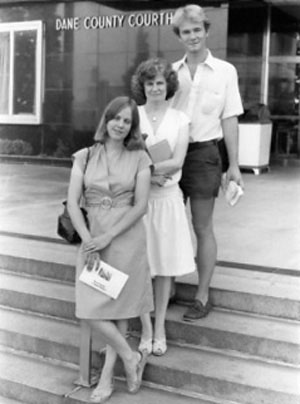 Plaintiffs line up after filing a lawsuit which ended a violation at the University of Wisconsin-Madison. The campus had shared student names and addresses with campus proselytizers.