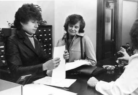 Anne Gaylor with attorney Jody Helms filing an early lawsuit. Mike Hakeem’s tribute featured many of the Foundation’s legal actions under Anne’s direction.