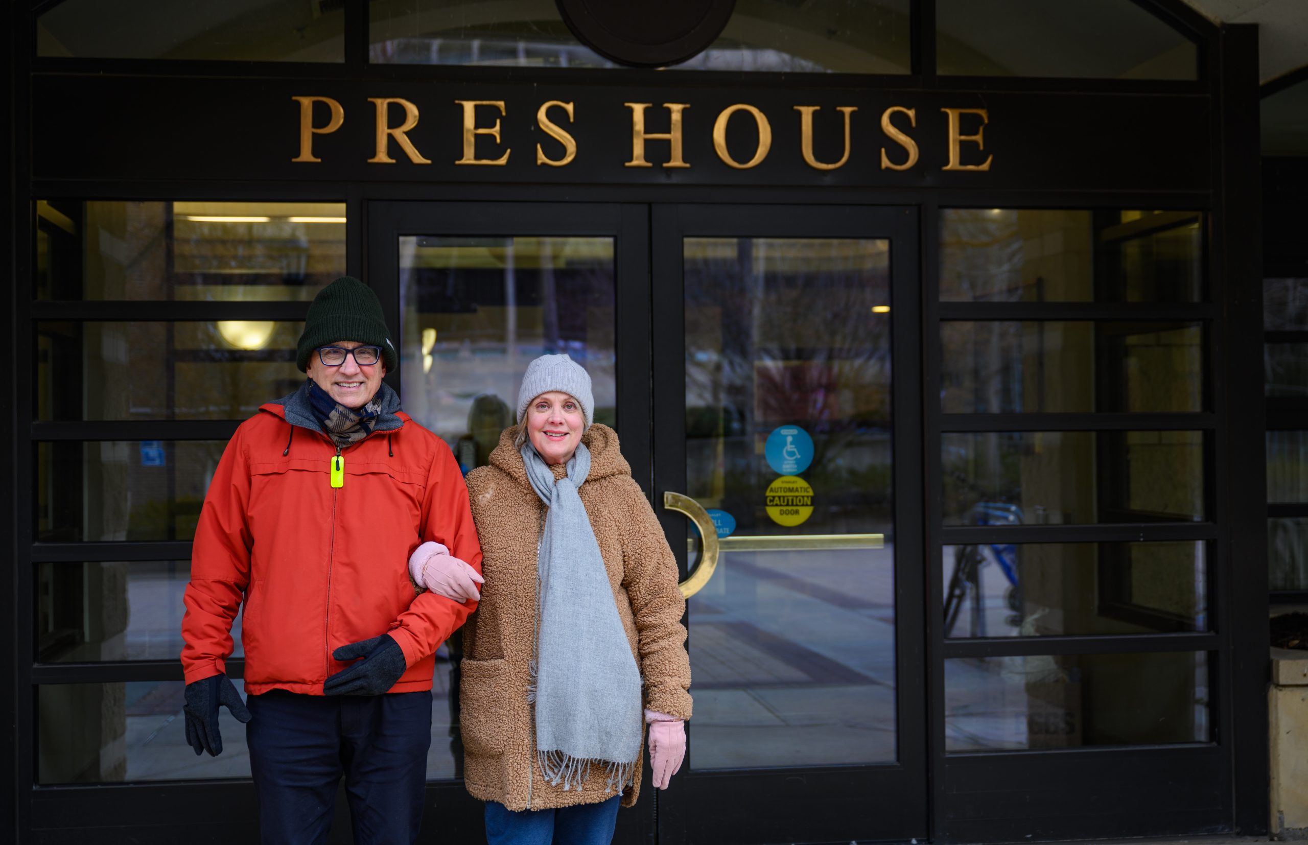 FFRF co-presidents Annie Laurie Gaylor and Dan Barker in front of The Pres House