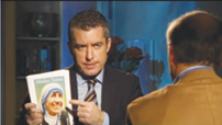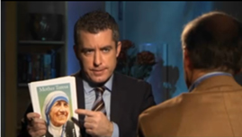 When I saw the final segment, I was surprised to hear myself using the word “conspiracy.” That was one word I was definitely planning to avoid. I remember Jason pestering me for a long time about the “Catholic conspiracy” to get Mother Teresa on a U.S. postage stamp. Although it is no secret that the Catholic Church does have a lot of influence, we don’t know what, if any, strings were pulled to get it to happen. In one sense, all religions are conspiracies, and I must have said something about that, using “conspiracy” with a lower-case “c.” Sure enough, they got that line into the final cut.