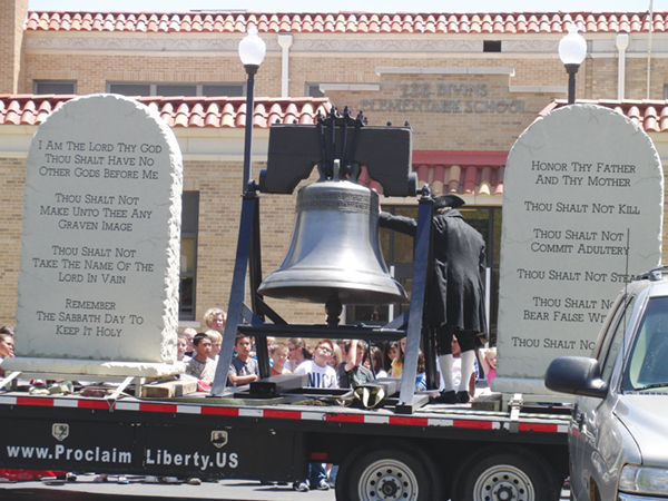 FFRF received a parental complaint about “Belladier” David Hall of Proclaim Liberty bringing his Liberty Bell and Ten Commandments exhibit to Bivins Elementary, a public school in Amarillo, Texas. Parents weren’t notified in advance about the program. A school district attorney responded to FFRF’s letter of complaint, saying, “Mr. Hall is not scheduled to present to AISD students again.” The attorney, Andrea Slater Gulley, prefaced that, however, with, “I disagree with your conclusion that constitutional violations occurred. Nonetheless, the district appreciates being informed that parents found the display and presentation to be offensive, especially since it has not received any other complaints.”