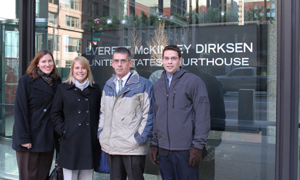 Attorney Richard L. Bolton (second from right) after his oral argument in Chicago on behalf of FFRF, pictured with FFRF staff attorney Rebecca Markert, legal clerk Stephanie Schmitt and staff attorney Patrick Elliott.