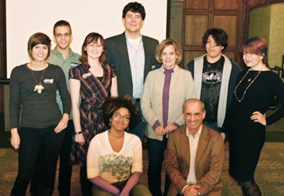 DePaul University in Chicago, the largest U.S. Catholic college (25,000 students), now boasts a student freethought club, the DePaul Alliance for Free Thought, humorously known as DAFT (because who would be “daft” enough to start a club for atheists and agnostics at a Catholic college?). FFRF Co-Presidents Dan Barker and Annie Laurie Gaylor had the great pleasure of addressing the club on Nov. 18. The pair spoke in a room graced by photos of the university’s presidents, all men in black collars. Pictured (front) Brianna Montague (community service co-chair), and Dan Barker. (Back from left): Olivia Morris (treasurer), S.D. (community service co-chair), Brandi Stepp (president), Andrew Tripp (co-vice president), Annie Laurie Gaylor, Dominic Morimoto (co-vice president) and Danielle Wordelman (secretary).