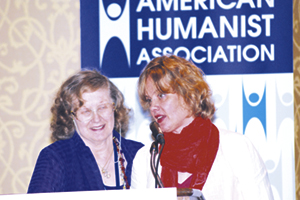 Meg, professor emerita of sociology, is a feminist author, activist and civil rights pioneer, and works with feminist and humanist charities. Annie Laurie, author of two books dealing with women and religion, is a co-founder of the Freedom From Religion Foundation and serves on the board of the Women’s Medical Fund, which has helped well over 16,000 women without means pay for abortion care. Meg gave a rousing feminist talk, and Annie Laurie presented the inside story on FFRF’s National Day of Prayer victory.