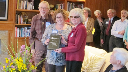 NARAL Pro-Choice Wisconsin director Lisa Subeck (center) presents the George Tiller Award to FFRF President Emerita Anne Nicol Gaylor (right). At left is Professor Robert West, a co-founder of the Women’s Medical Fund FFRF Lifetime Member. FFRF Board Member Nora Cusack is at right behind Anne.