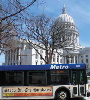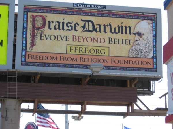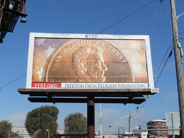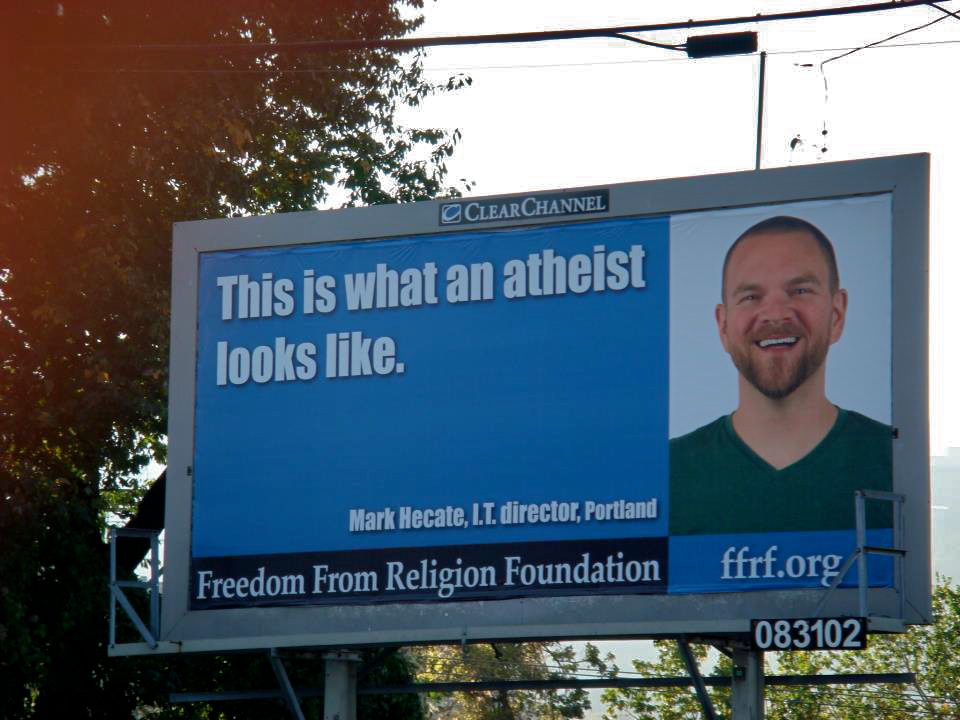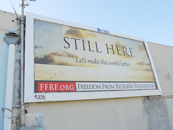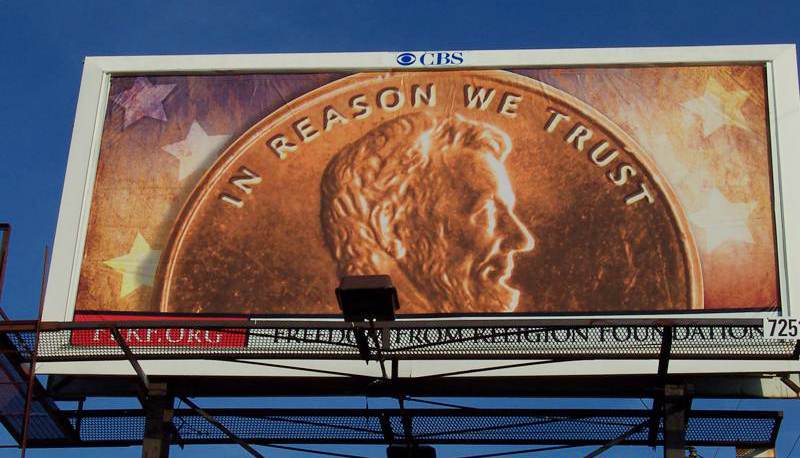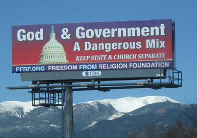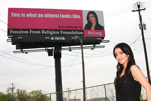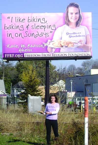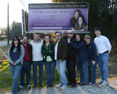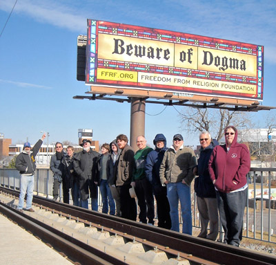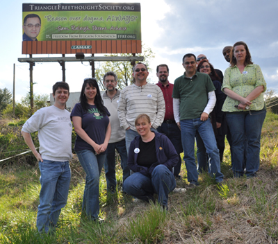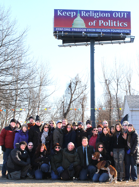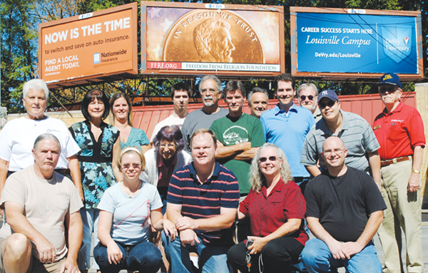 Louisville FFRFers pose in front of FFRF billboard in October 2010.
