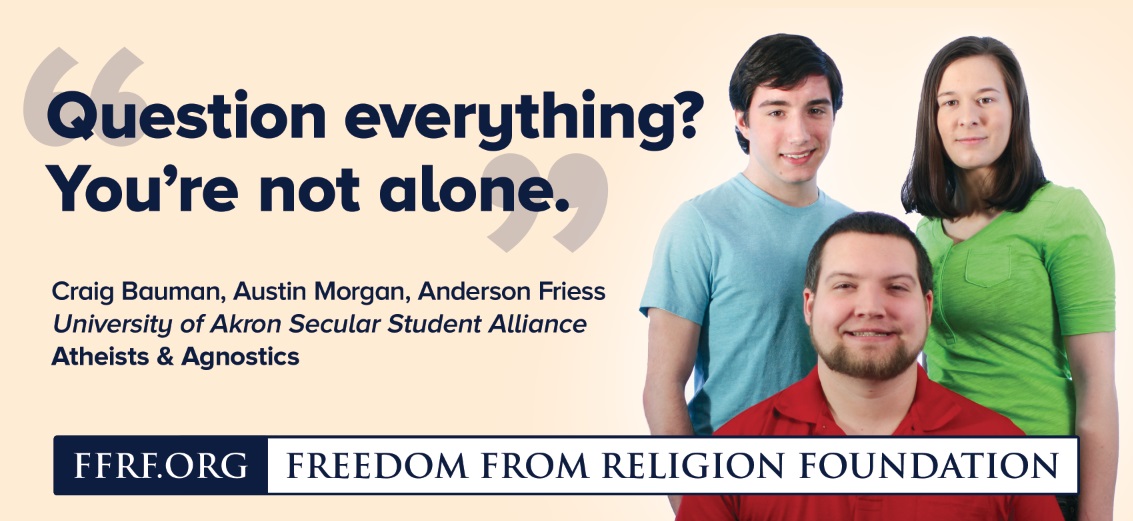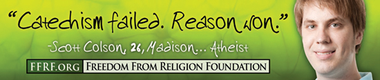 FFRF’s myth-dispelling and uniquely positive “Out of the Closet” billboard/bus sign campaign debuted in a Madison, Wis. in October 2010. (Scroll down to find archive of Madison billboards.)