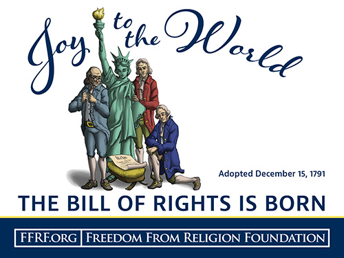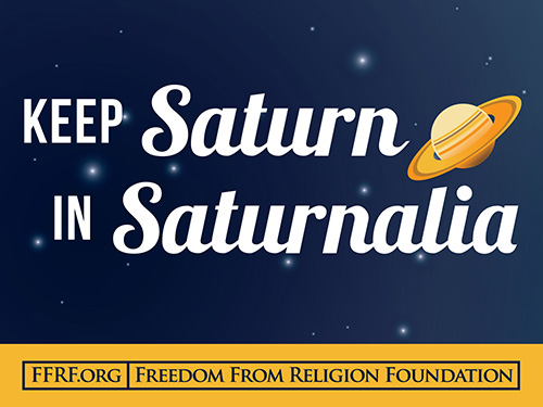 Tired of staring at āKeep Christ in Christmasā signs in your neighborhood? Try our āSaturnalia is the Reason for the Seasonā sign. Concerned about religious divisiveness and encroachments in our civil government? The āAt this season of the Winter Solstice May Reason Prevailā motto coined by FFRF Founder Anne Nicol Gaylor is available for a sign or poster. Or you may want to celebrate the Bill of Rights, adopted on Dec. 15, 1791, by displaying FFRFās whimsical Bill of Rights Nativity.