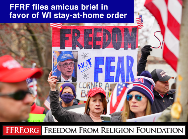 The Freedom From Religion Foundation has filed an amicus brief before the Wisconsin Supreme Court in favor of the state’s stay-at-home order, specifically as it applies to religious gatherings.