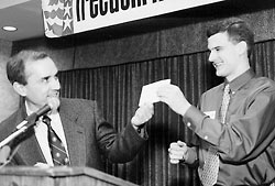 Computer nerd that I am, I got on the Internet and furiously typed “atheist” into my web search program, and lo and behold, there was the FFRF web page. The web page interested me because it was proof that there were other freethinkers, but the most important thing about the web page was the e-mail address at the bottom of the page. I switched into my mail program and e-mailed Dan Barker.