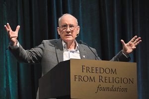 Eight months later, after joining the Freedom From Religion Foundation, he gave his first talk at the FFRF convention in Milwaukee in September 1984. That is 40 years ago. In 2004, he and Annie Laurie Gaylor became co-presidents of the Freedom from Religion Foundation. That was 20 years ago. Since leaving the ministry, he has participated in 140 public debates and has written 11 books.