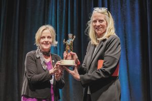 Lisa Strand:Ā Itās my pleasure to introduce this yearās Clarence Darrow Award honoree. The award includes a statuette that is solid bronze and is a miniature of the 7-foot statue by Zenos Frudakis that FFRF erected in Dayton, Tenn., home of the Scopes trial.