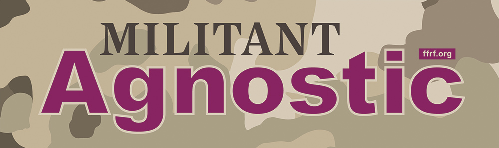 FFRF’s motto on gorgeous metallic gold. 1 dozen stickers 4 x 3″